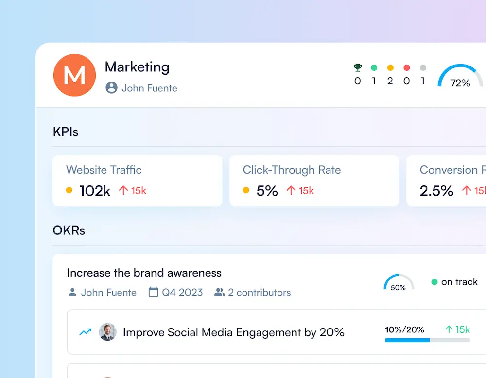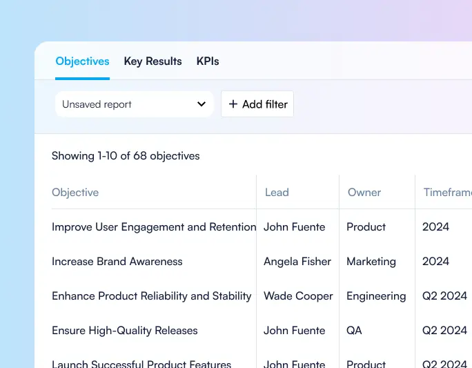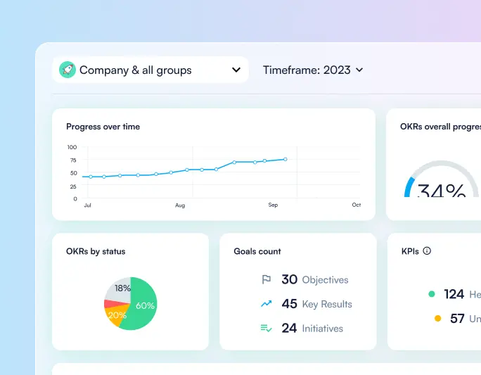 KPIs are equally, if not more, important. Align them with your strategy. Track them alongside your OKRs and build insightful connections. Create an OKR to improve a KPI.